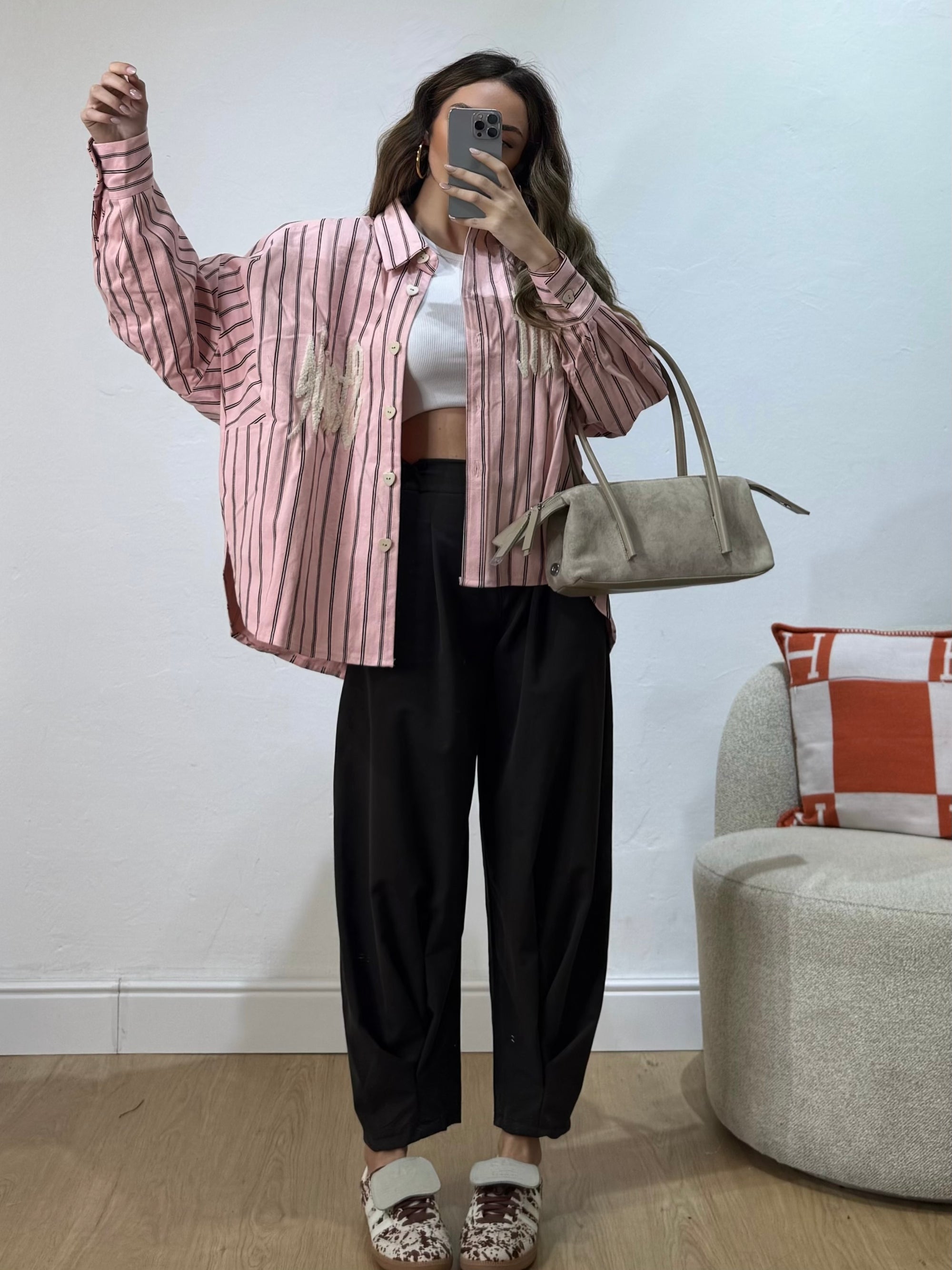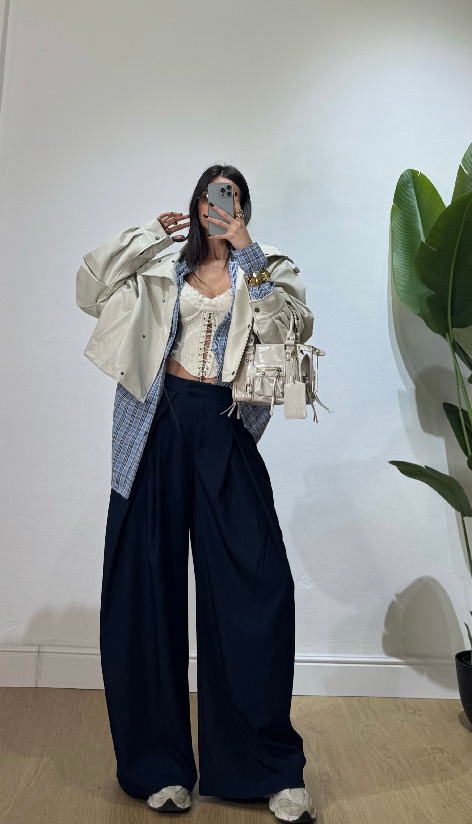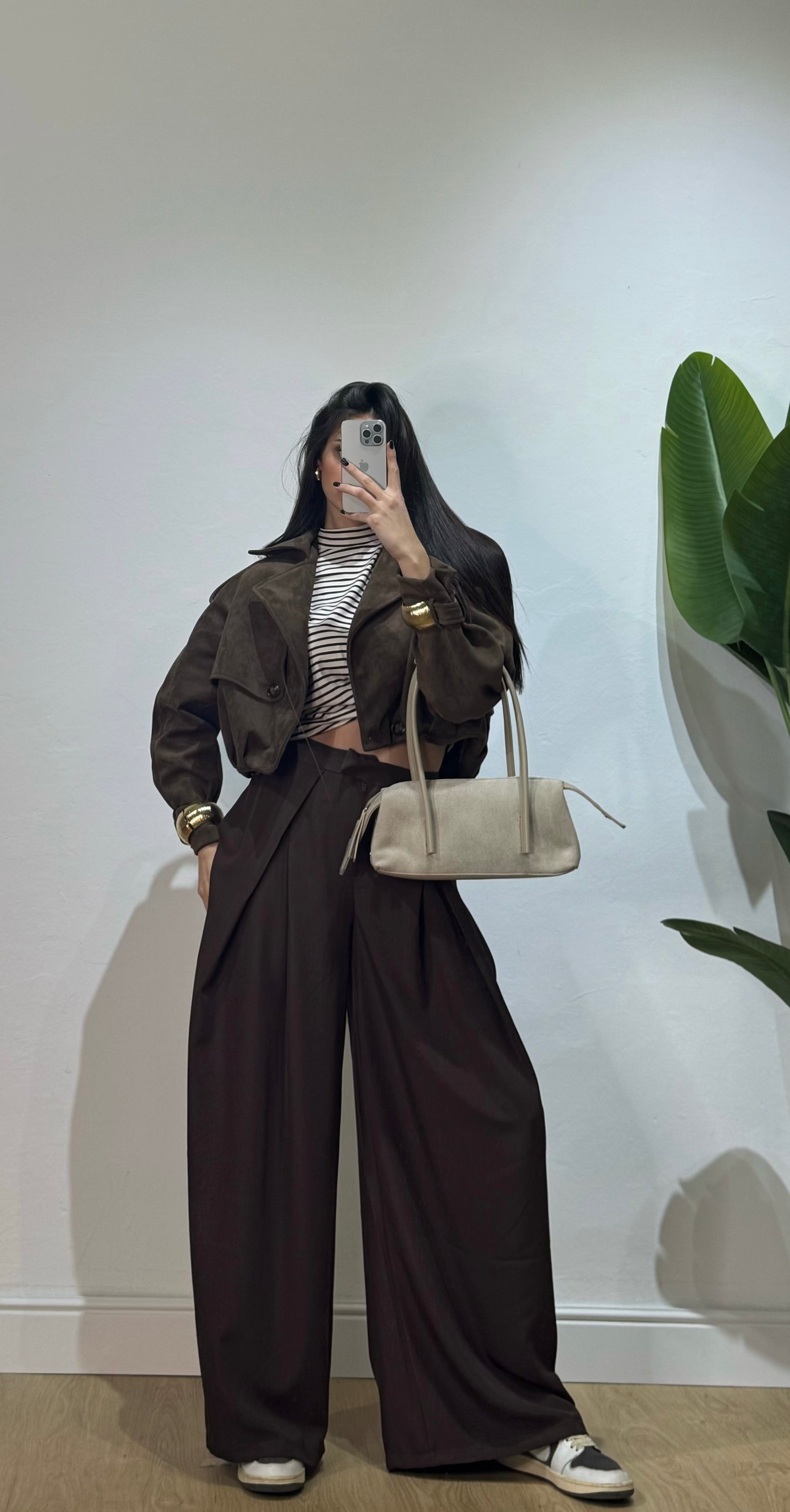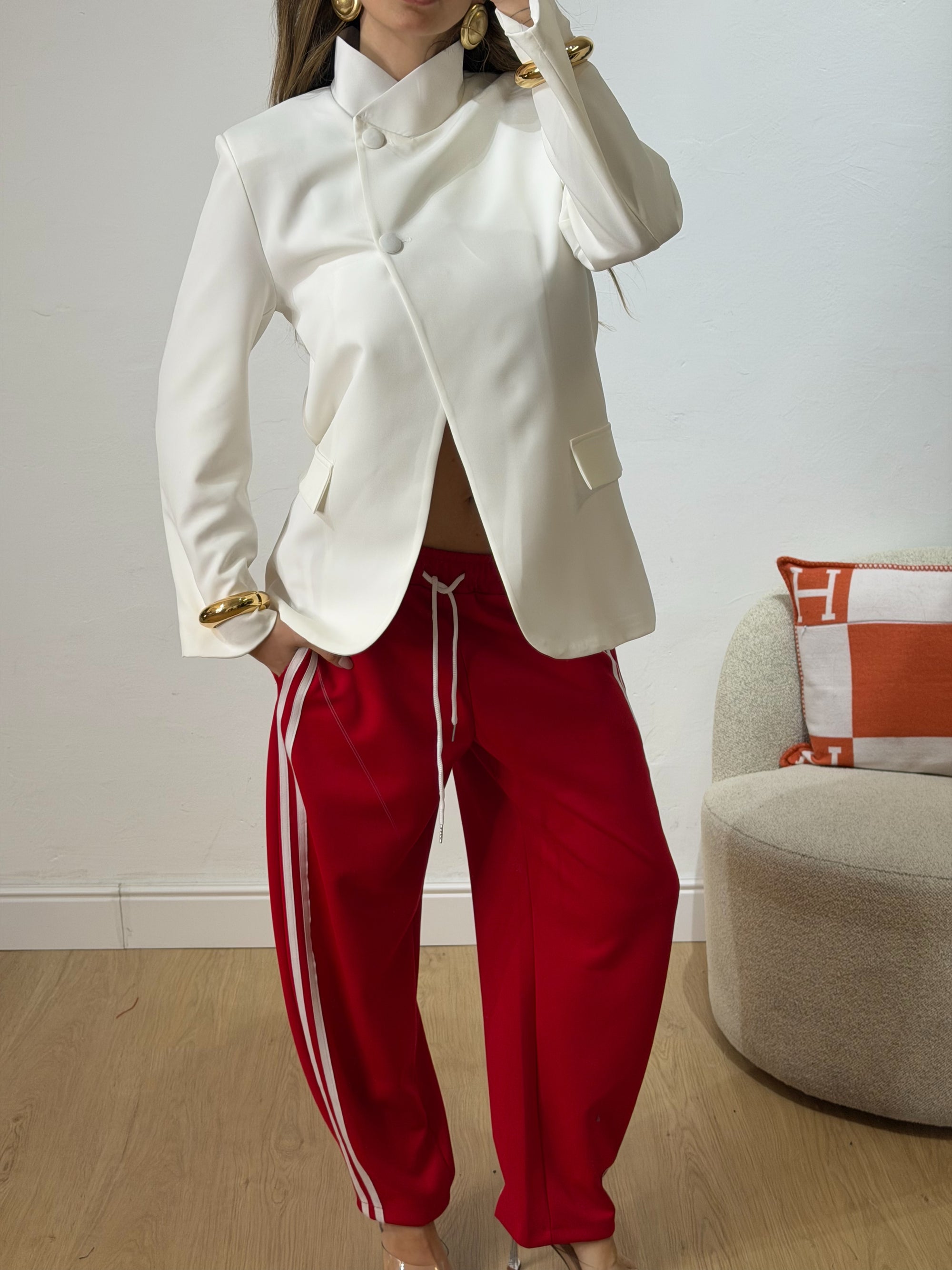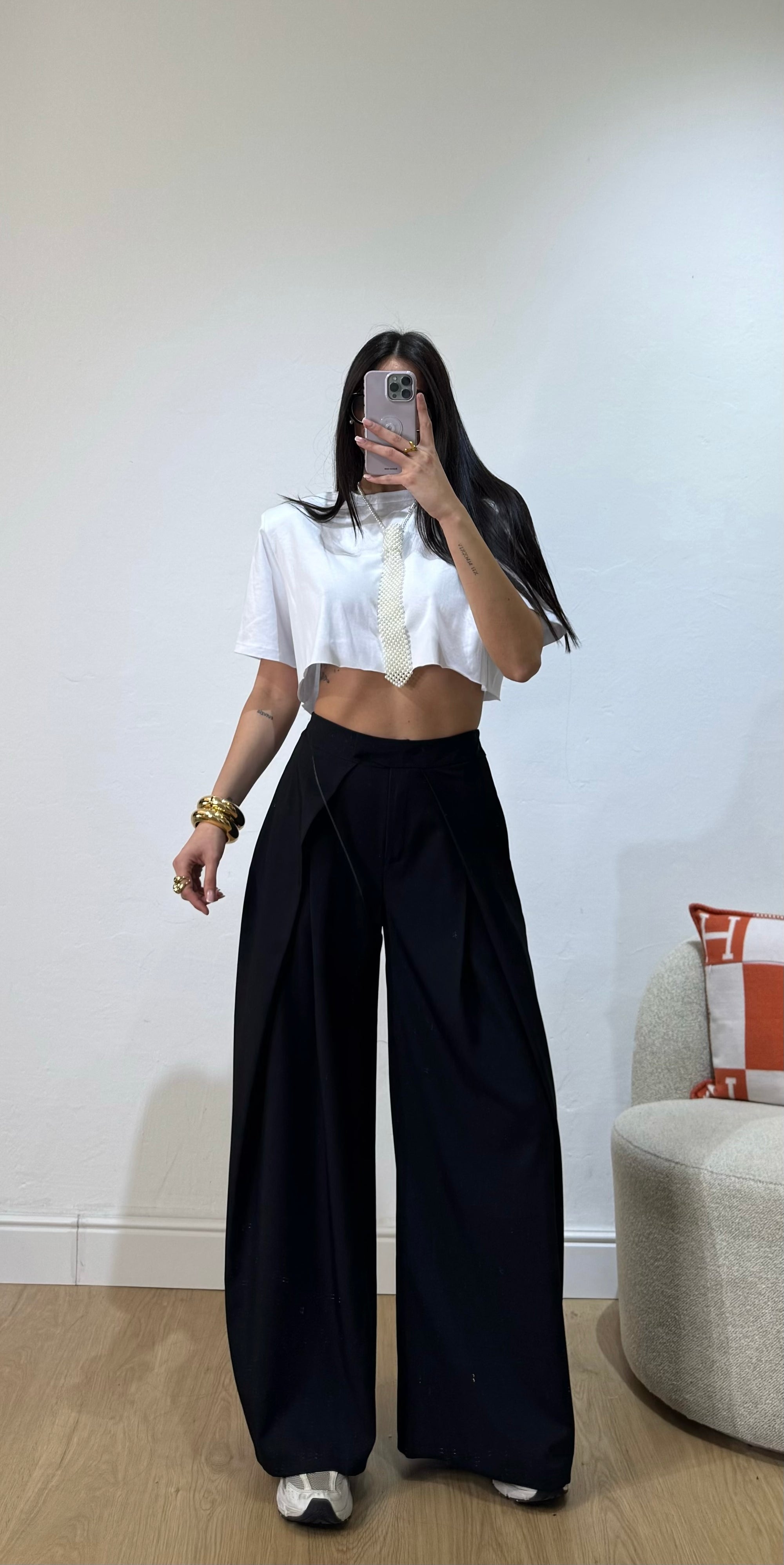 completo composto da canotta crop con bottoncini e pantalone palazzo con elastico in vita.